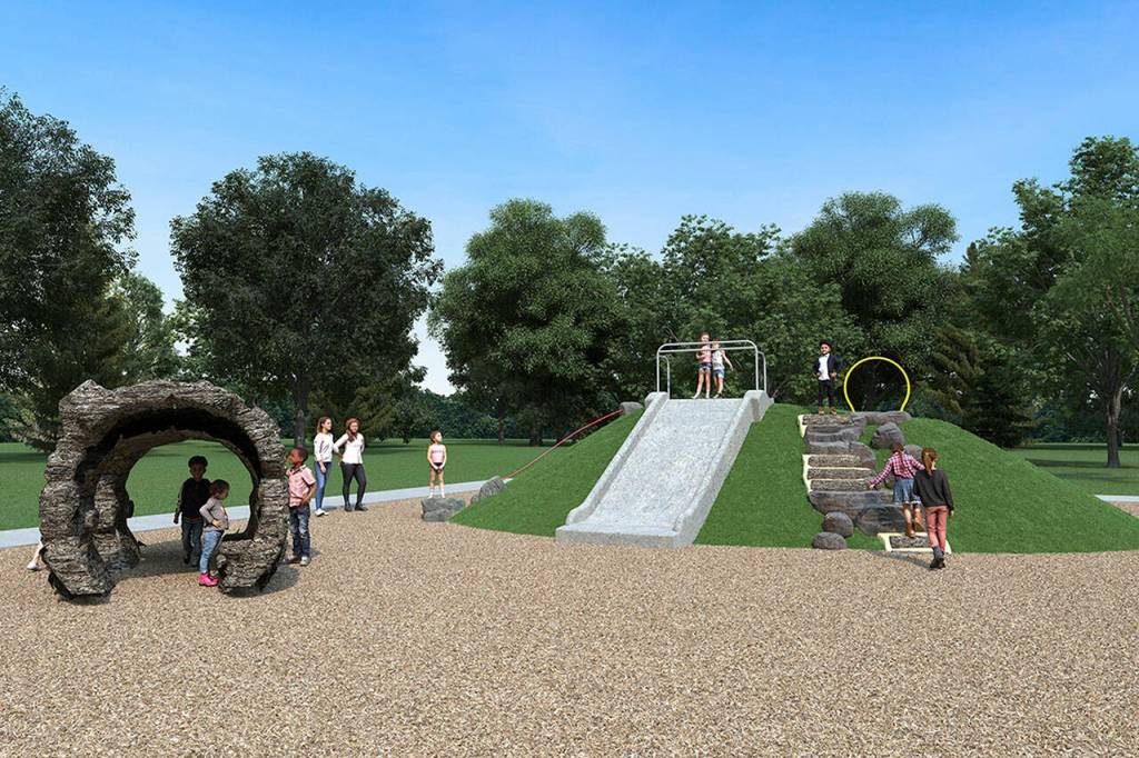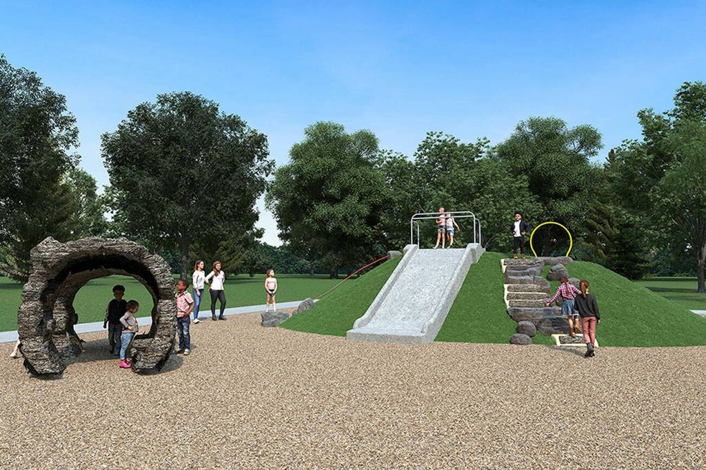 Organizers anticipate the first phase — a large hill with a slide, a 7-foot-by-9-foot concrete log, and a poured-in-place rubber surface — to be installed by March 2024.