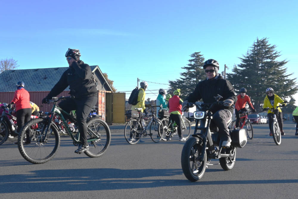 In 2022, 60 cyclists gathered and donated 1.5 tons of food and $2,830 in cash for the Sequim Food Bank.