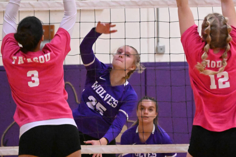 Stovall, also a middle hitter, led Sequim in aces (48) and was second on the team in kills (58) and blocks (29). She was also one of the Wolves’ top servers, connecting on 89.1% (230 of 258) of her serves.