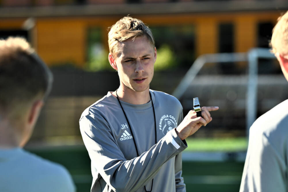 For the second time, Peninsula College men’s soccer coach Jake Hughes has been named the NWAC soccer coach of the year.