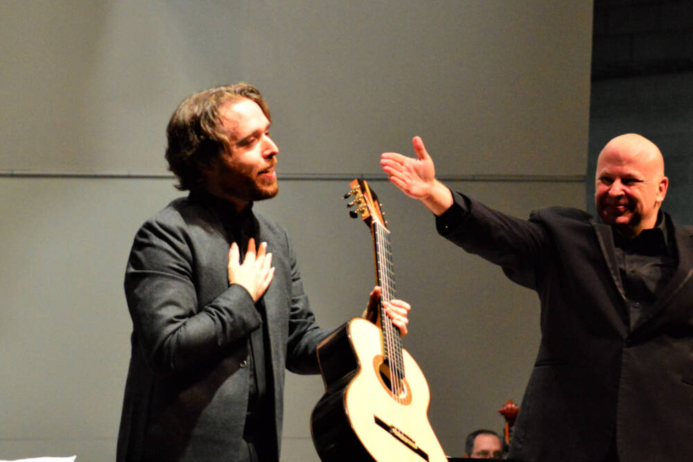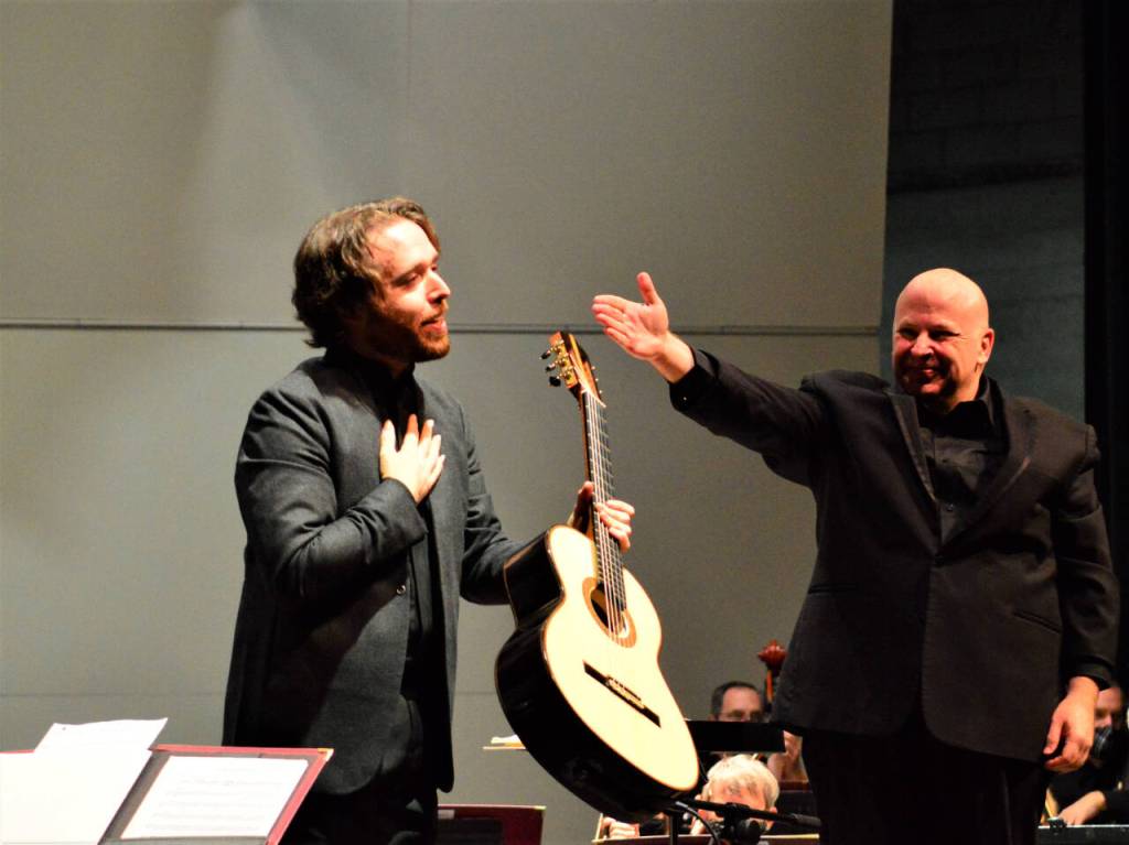 At the last minute, Pasternack had to find a replacement for the Symphony’s scheduled guitar soloist at its Dec. 11, 2021 dress rehearsal and evening concert. A mutual friend of Davin and Pasternack asked whether Davin, then based in Cleveland, could fly West to step in. Rodrigo’s Concierto de Aranjuez was the centerpiece, one Davin knows well. He boarded a plane, performed with the Port Angeles Symphony, received standing ovations, and flew back home.