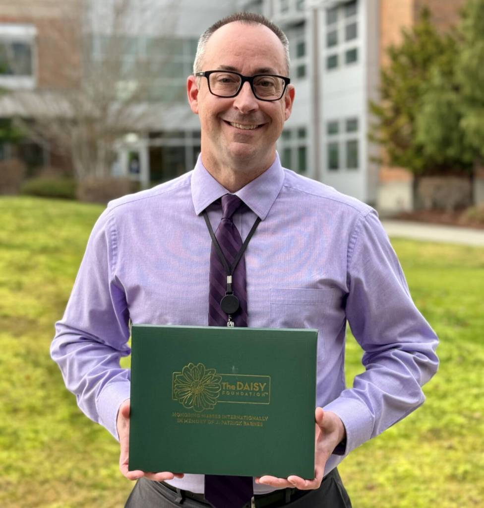 Shawn Gould, an oncology nurse at Olympic Medical Cancer Center, was recently honored with the DAISY Nurse Leader Award.