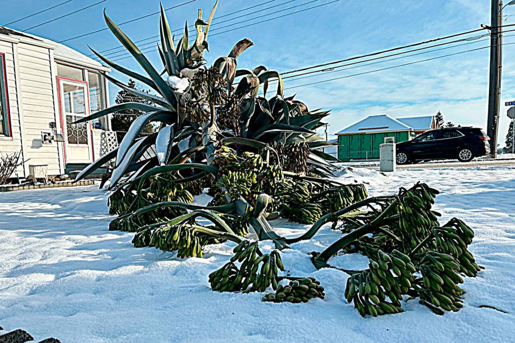 The plant is known for growing in warmer, drier areas and not the cold, rainy Pacific Northwest, which made Johnston’s agave unique for Sequim. It has endured cold weather before including last winter where some leaves were damaged, but the recent cold weather going down to single digits might have been the coldest she and the plant has felt in Sequim, Johnston said.