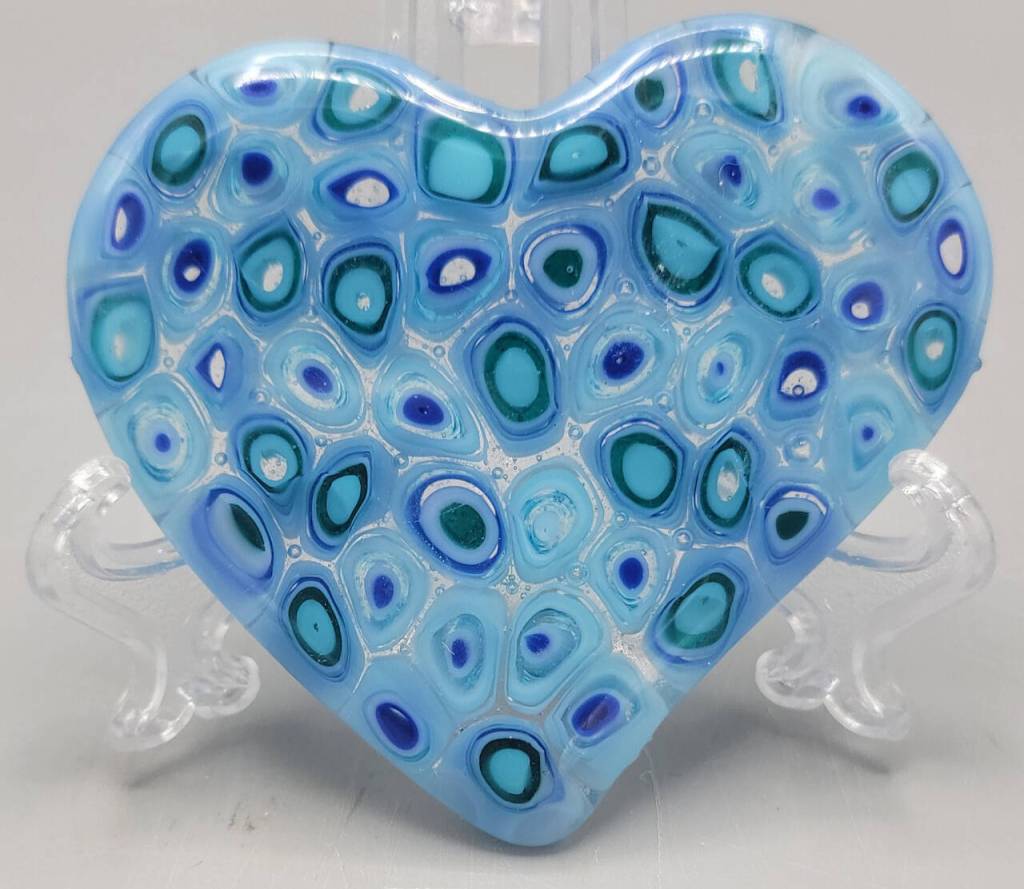 Since 2006, Whetstine has been exploring the possibilities kiln-formed glass offers, limited only by her imagination. A retired firefighter from southern California, she works with kilns that can reach 1,700 degrees.