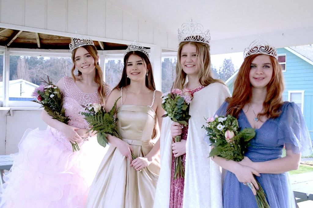 This year’s Clallam County Fair royal court are, from left, Princess Aliya Gillett of Forks, Princess Tish Hamilton of Port Angeles, Queen Brooklyn McKnight of Port Angeles and Princess Olivia Ostlund of Sequim. The four were crowned Jan. 27 and will preside over the 2024 Clallam County Fair from Aug. 15-18. More than 150 people attended the coronation conducted at the Exposition Building at the Clallam County Fairgrounds. A silent auction raised more than $1,200 for scholarships.