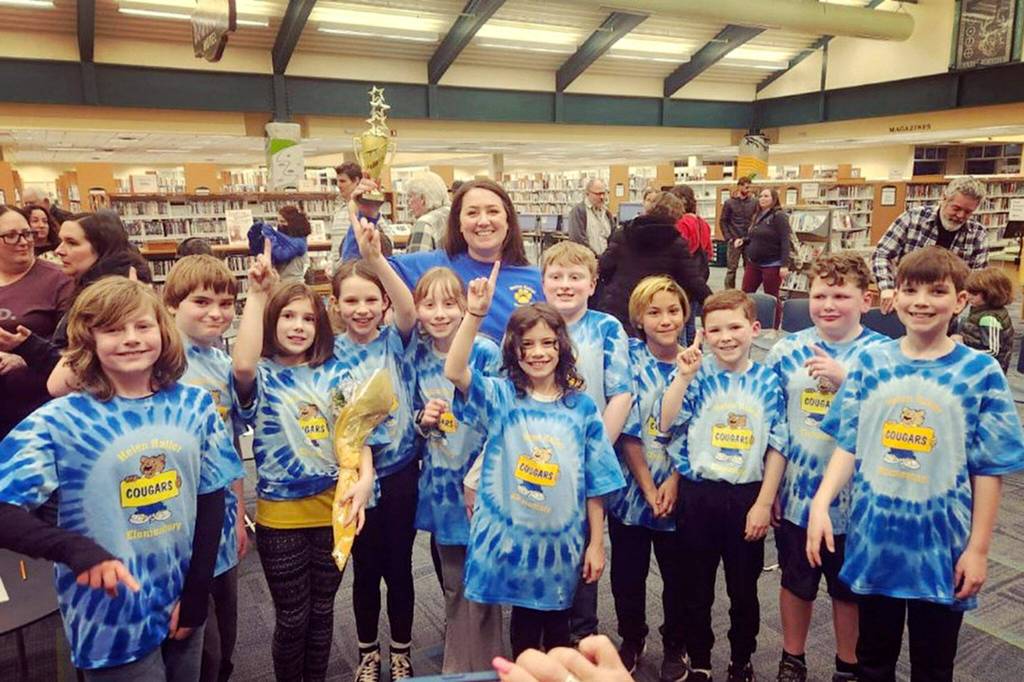 The Blue Titans from Helen Haller Elementary featuring Miles Angelovic, Mia Miano, Rain Nelson, Ramsey O’Mera and Winter Radcliffe won the trivia competition on March 22 at the Port Angeles Main Library.