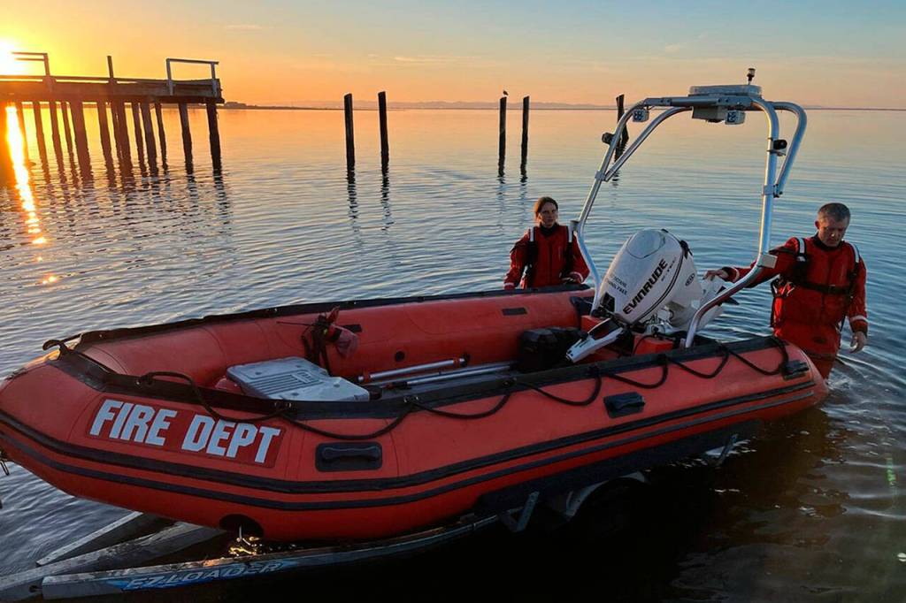 Firefighters determined they must deploy the district’s marine unit from the Dungeness Landing county park rather than drive out a utility task vehicle because they would not make the journey before the incoming high tide.