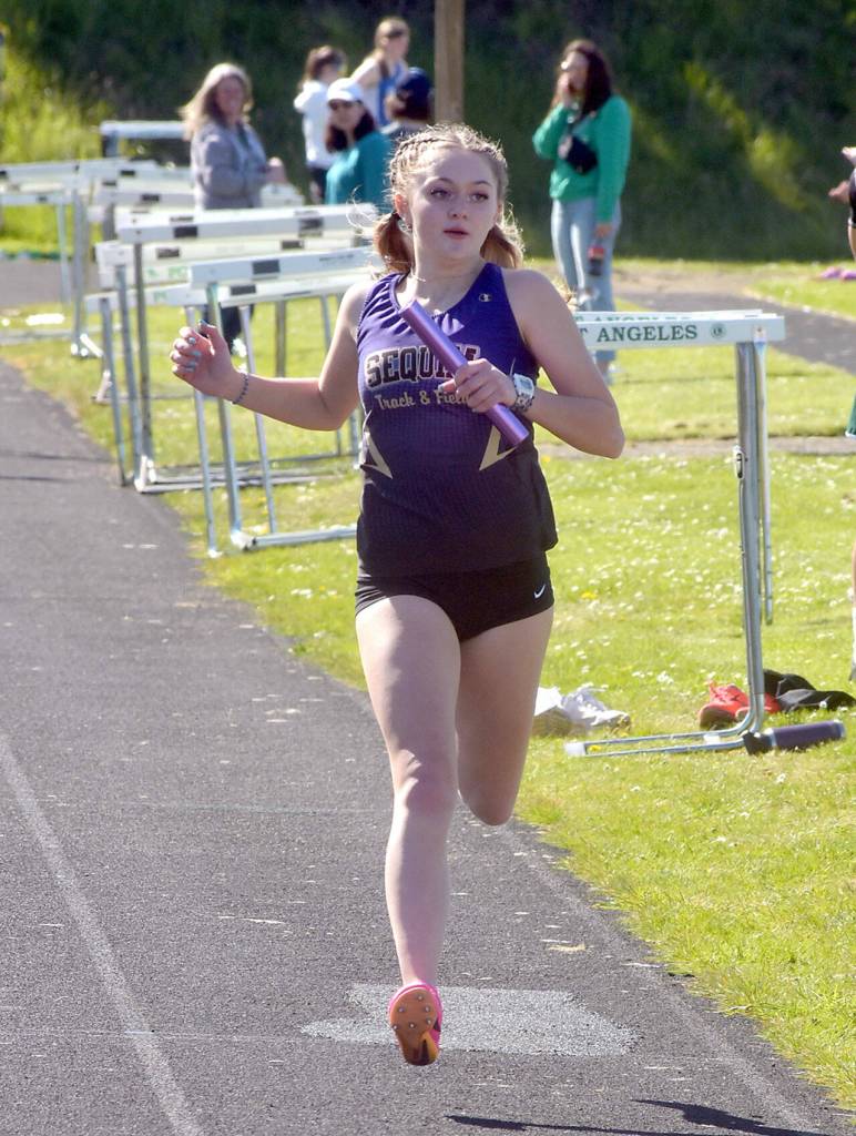 Earning seven first place finishes, Sequim’s girls took first place in a five-team Olympic League meet at Port Angeles High on April 18, knocking off league foes PA and Kingston as well as smaller schools Crescent and Neah Bay.