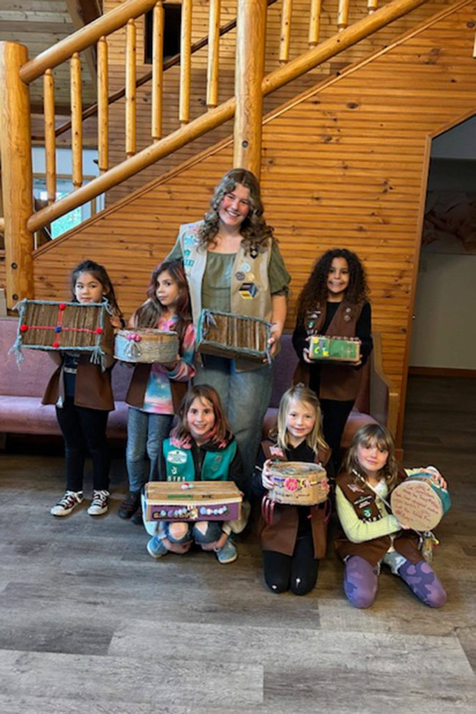 Troop leader Heidi Krzyworz said the girls up-cycled Girl Scout cookie boxes on March 6 into cat scratchers for the Olympic Peninsula Humane Society’s Kitty City at 91 Boyce Road.