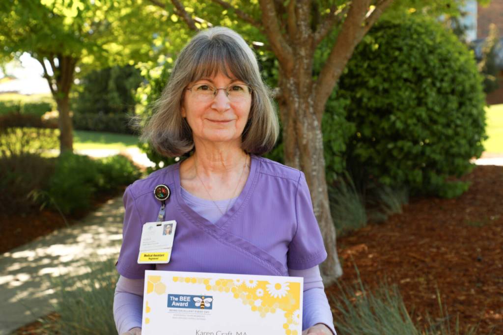 Karen Craft, a medical assistant with Olympic Medical Center, was recently honored with an OMC BEE (Being Excellent Every Day) Award.