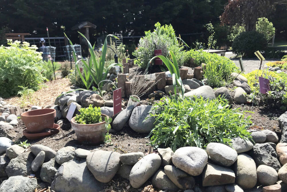 Woodcock Demonstration Garden in Sequim has a lovely cottage style herb garden. It features an informal rock spiral planting bed with annual as well as perennial herbs. In and around the spiral you may find garlic, onions, celery and cabbage on occasion.