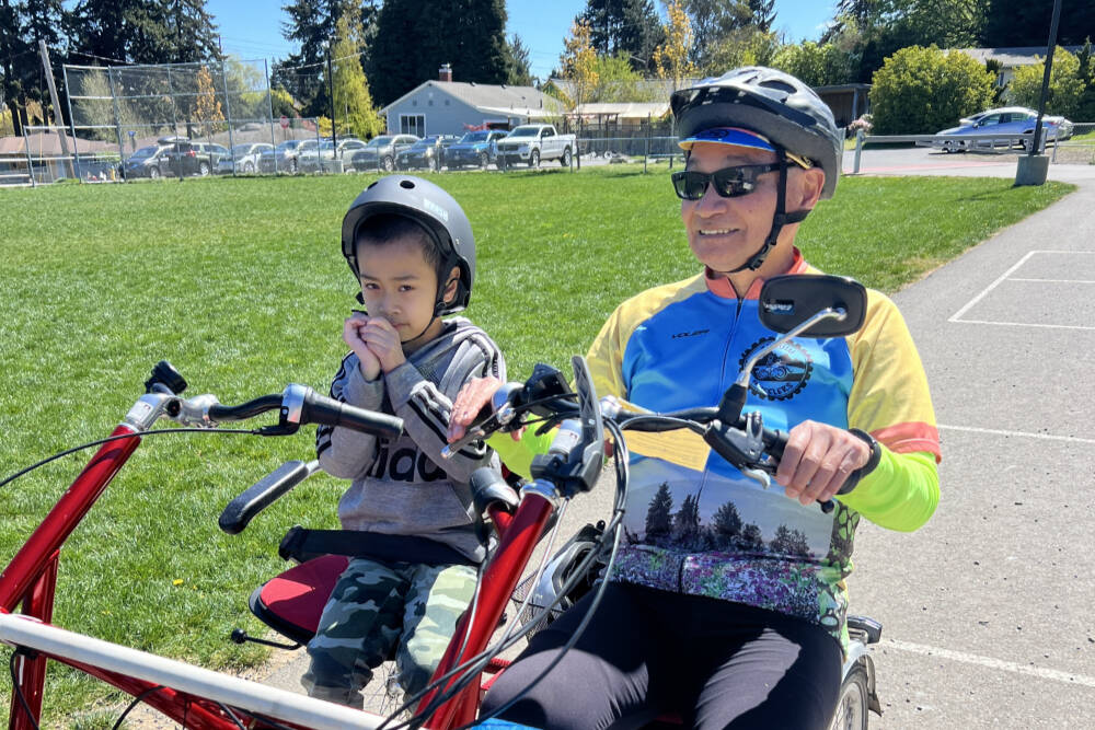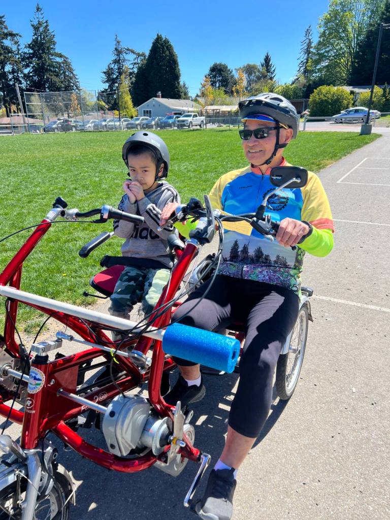 The first time Sequim Wheelers came out, Moyer noted, the student sat on a side-by-side tandem without much fuss. They biked around the school grounds and he clapped and smiled as they biked.