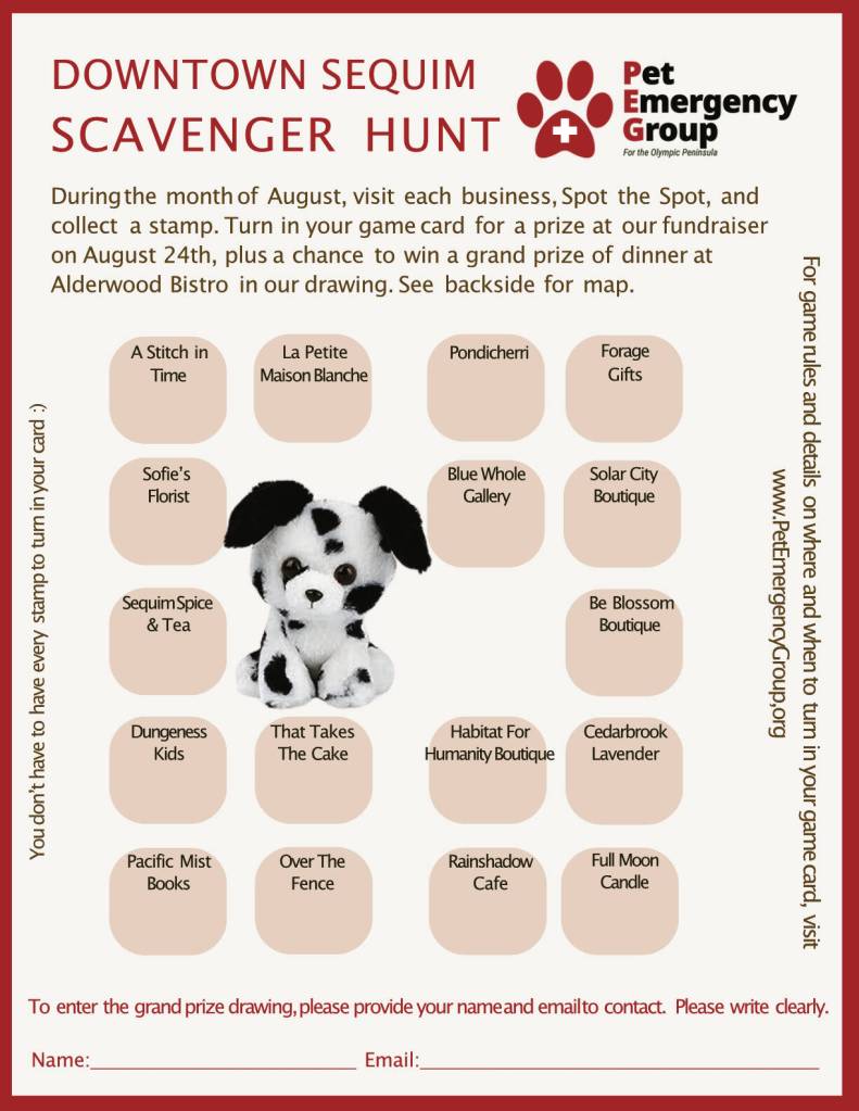 PEG also hosts a free scavenger hunt in conjunction with the event, called Spot Spot, during the month of August. To play, enter one of the 17 participating downtown businesses, spot the Spot (find the spotted dog), and get a game card stamped by the business. Turn the card in during the festival for an instant prize and enter the grand prize drawing for a dinner at Alderwood Bistro (do not need to be present to win). See petemergencygroup.org/scavenger-hunt.