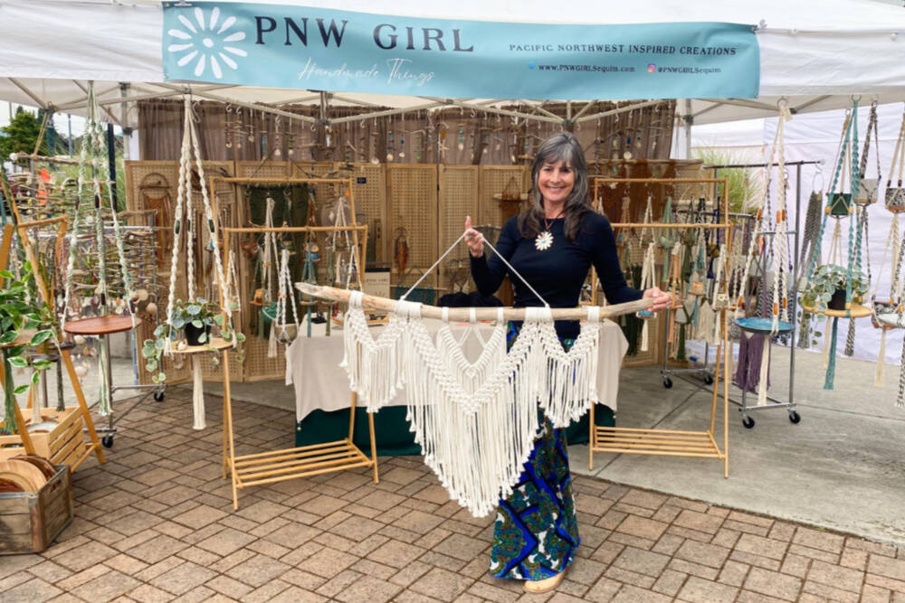 Shelly Weber of PNW Girl offers wall hangings, driftwood dangles woven with seaglass, plant hangers and more at her booth at the Sequim Farmers & Artisans Market.