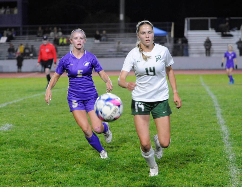 Far into injury time in the second overtime, Port Angeles’ Teagan Clark put a well-placed free kick into the left side of the goal box was headed off the post by Kedryn Descala and deflected across the face of the goal. Lancaster pounced on the loose ball and fired from a tough, low-angle shot back to the left post and in for the winner.