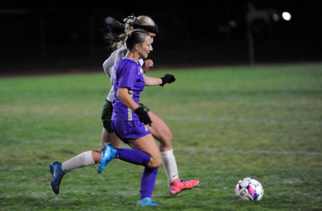 The game nearly ended in the final moments of regulation when the ball was sent back toward the Riders’ goal and on to an on-rushing Winter; she beat the lone Port Angeles defender and unleashed a hard shot from right to left, but a diving Kennedy Rognlien was there to preserve the overtime opportunity.