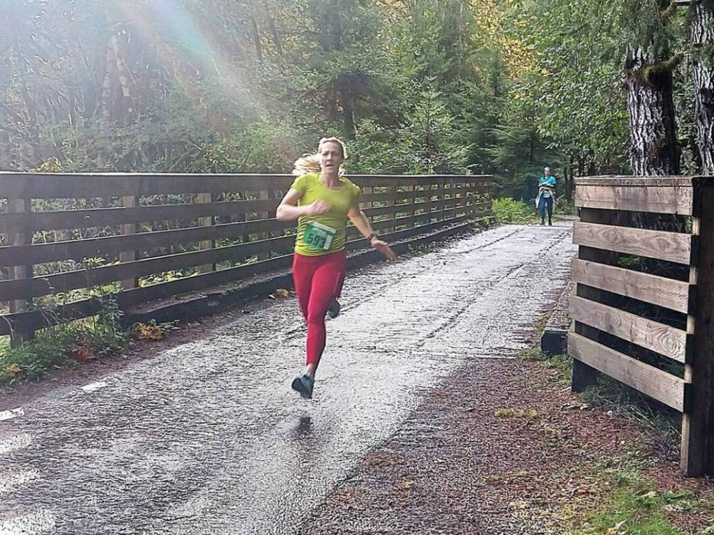 “I was feeling strong. It was so beautiful when the sun came out and there was this beautiful rainbow over Lake Crescent,” she said. “A big thanks to my husband for watching our two little girls while I ran.”