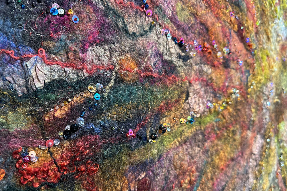 Artwork by Lora Armstrong / A detailed shot of “Kaleidoscopic Super Nova” by Lora Armstrong, a featured artist at the 19th-annual North Olympic Fiber Arts Festival fiber arts exhibition, “Sublime Marvel – Splendor, Enterprise, & Awe” at Sequim Museum and Arts, 544 N. Sequim Ave.