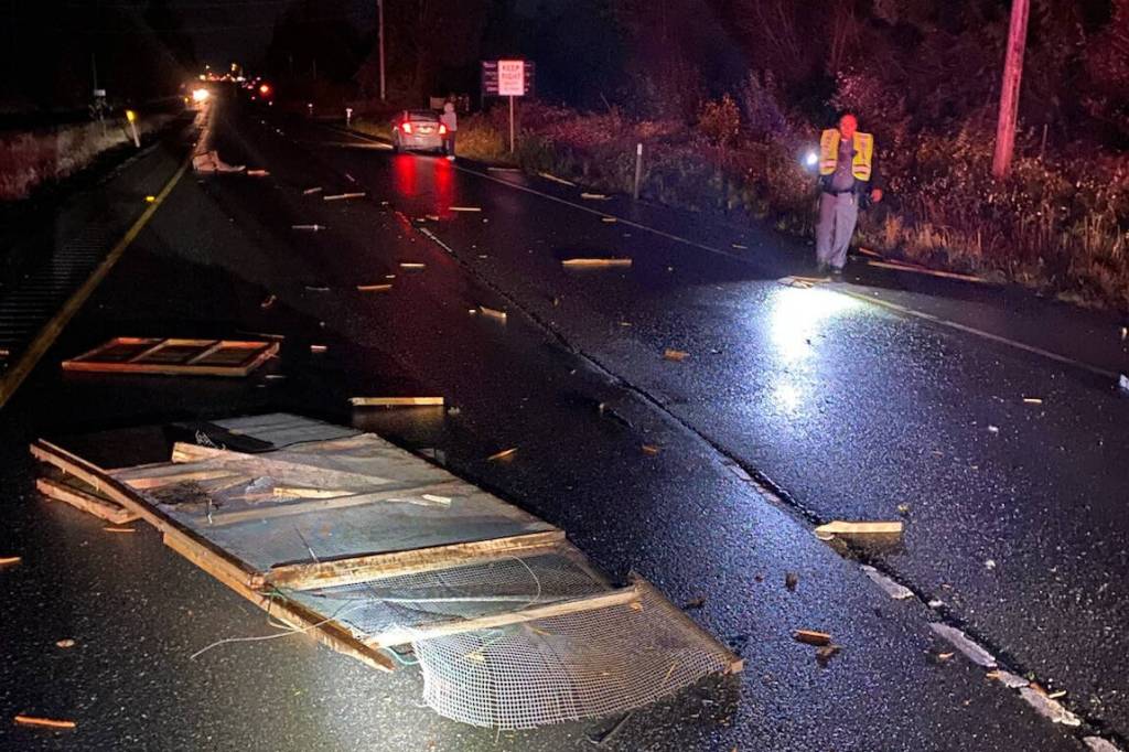 Trooper Katherine Weatherwax said troopers responded at 11 p.m. Nov. 12 to a report of a car hitting an unsecured, large homemade kennel in lane two of the eastbound lane on the highway by Kirk Road.