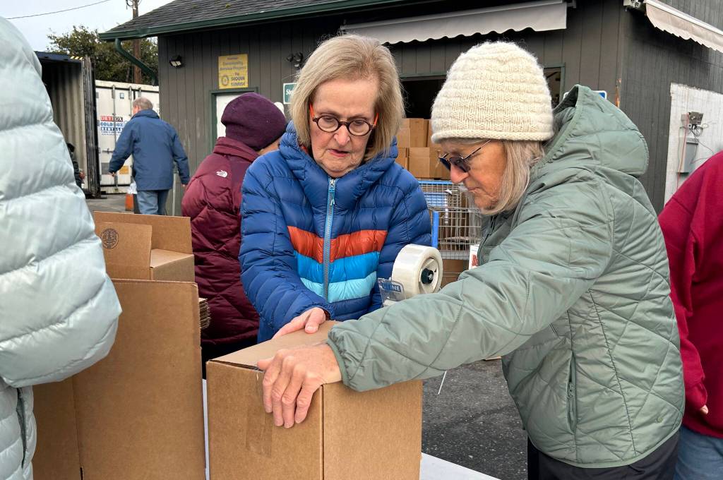 To ready the bags for delivery, about 30 volunteer Sequim Seventh-day Adventist members and friends packed 1,200 boxes on Nov. 21.