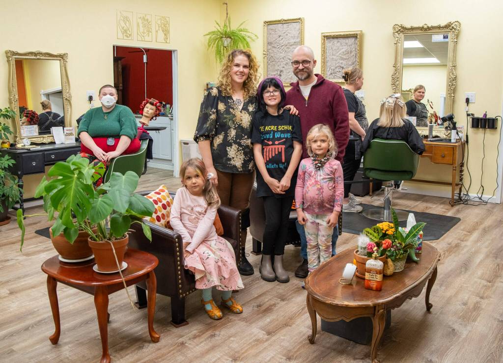 Little Shop of Hairdos owner Talia Landau, in the center, with the help of her family transformed a former ceramics studio in Carlsborg into a thriving beauty salon. Along with apprentice Kimmy Jackson and stylist Sarah Fueschel, she is busy every day the shop is open.