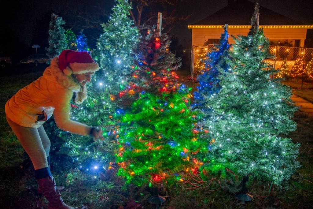 Since putting out the news last December that she wanted to save fake trees from the landfill, she and her helpers have “planted” 45-50 donated trees of various vintages and styles in her yard at 930 W. Bracket Road, Sequim.