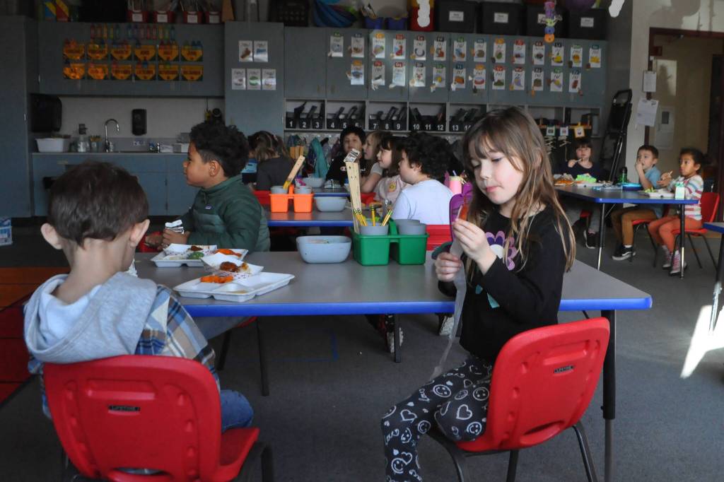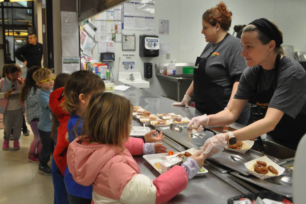 Since its opening, students who eat school lunches largely have had to receive their hot lunches from a serving kitchen and then walk down school halls to eat in their classrooms. The school hosts about 550 pre-kindergarten through second grade students.