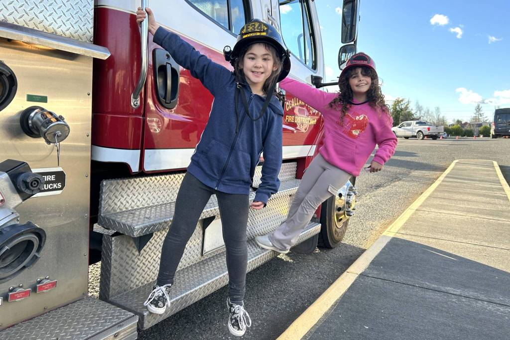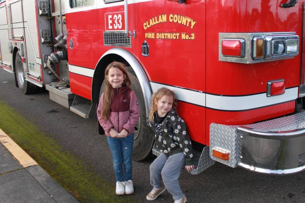 Sequim Elementary PTA honored its top Turkey Trot earners last week with fire truck rides home courtesy of Clallam County Fire District 3.