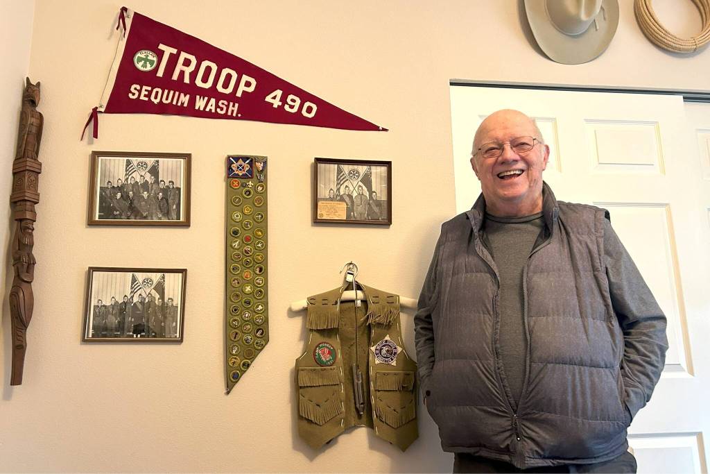 The rank is something Godfrey, a 2023 Sequim Irrigation Festival honored pioneer, is still proud of decades later with pictures, his 42 merit badges and troop banner prominently placed in his office.