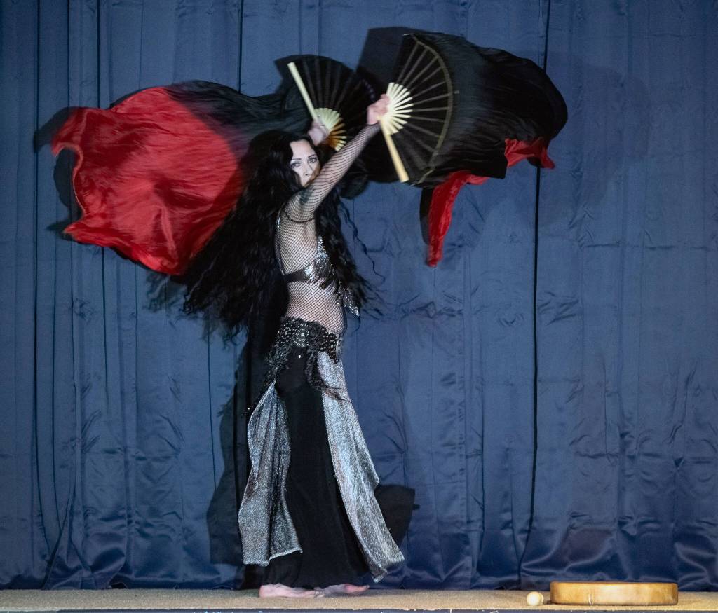 On Feb. 21 the seats were filled at Studio Bob in Port Angeles. The Peninsula’s only belly dance troupe, Shula Azhar (Flaming Flowers in Arabic), took the stage to loud applause.