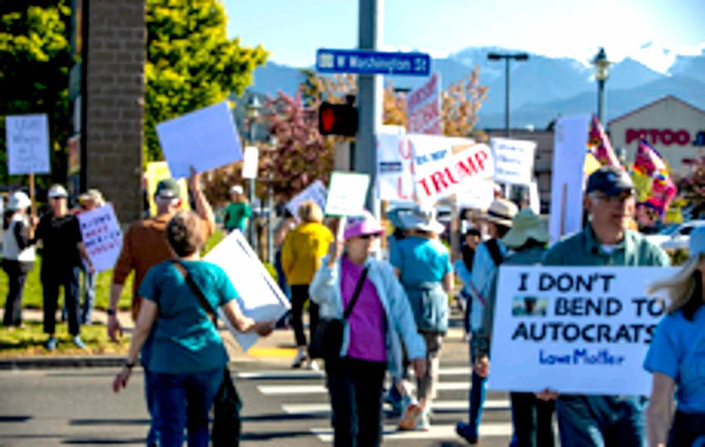About 700 people turned out late Thursday afternoon in a May Day protest against the Trump administration’s actions pertaining to immigration, federal job cuts and more. Organizer Chris Walker said that protesting on Washington Street in the area of Priest Road was “the perfect nexus” of people getting off work. The latest Sequim protest was again one of many such demonstrations across the country.