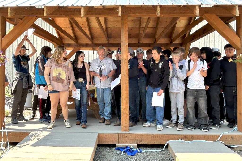The gazebo, and a shed also built and donated by the middle school class, sit next to a greenhouse that OPA purchased through a Pacific Northwest National Laboratory grant last year.