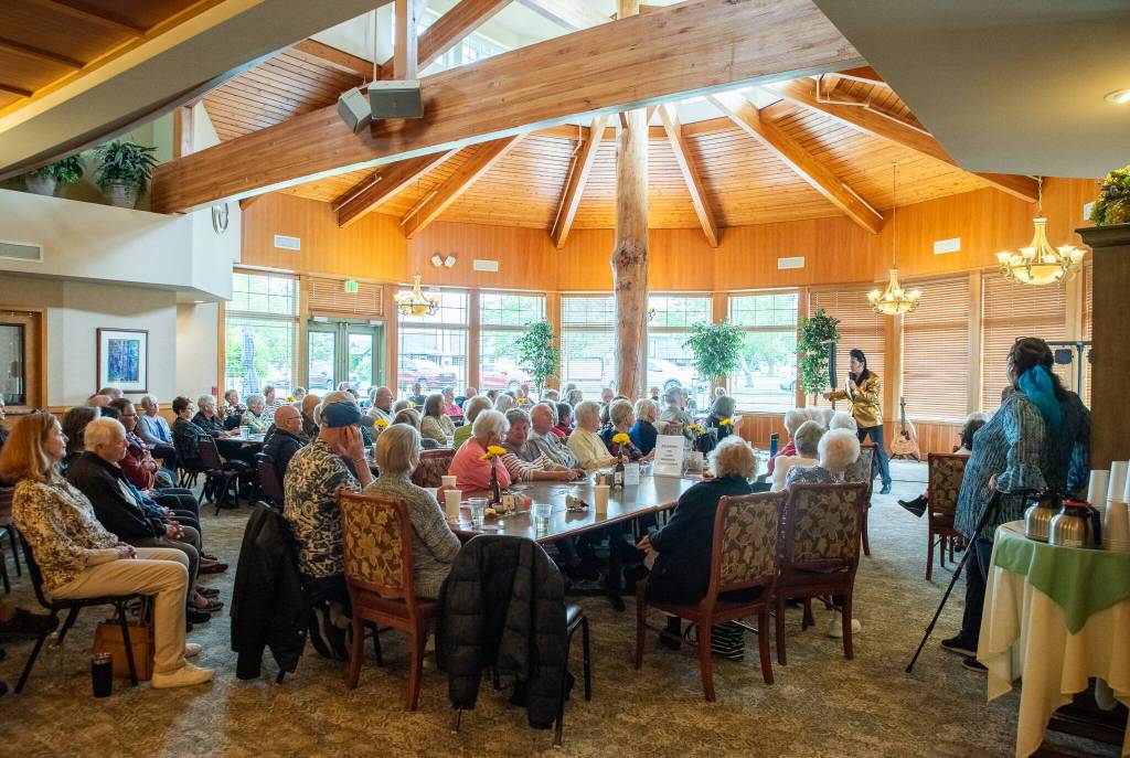 About 135 people congregated in the Olympic Dining Room at The Lodge at Sherwood Village in Sequim for “The Illusion of Elvis,” an energetic performance by Danny Vernon of Milton.