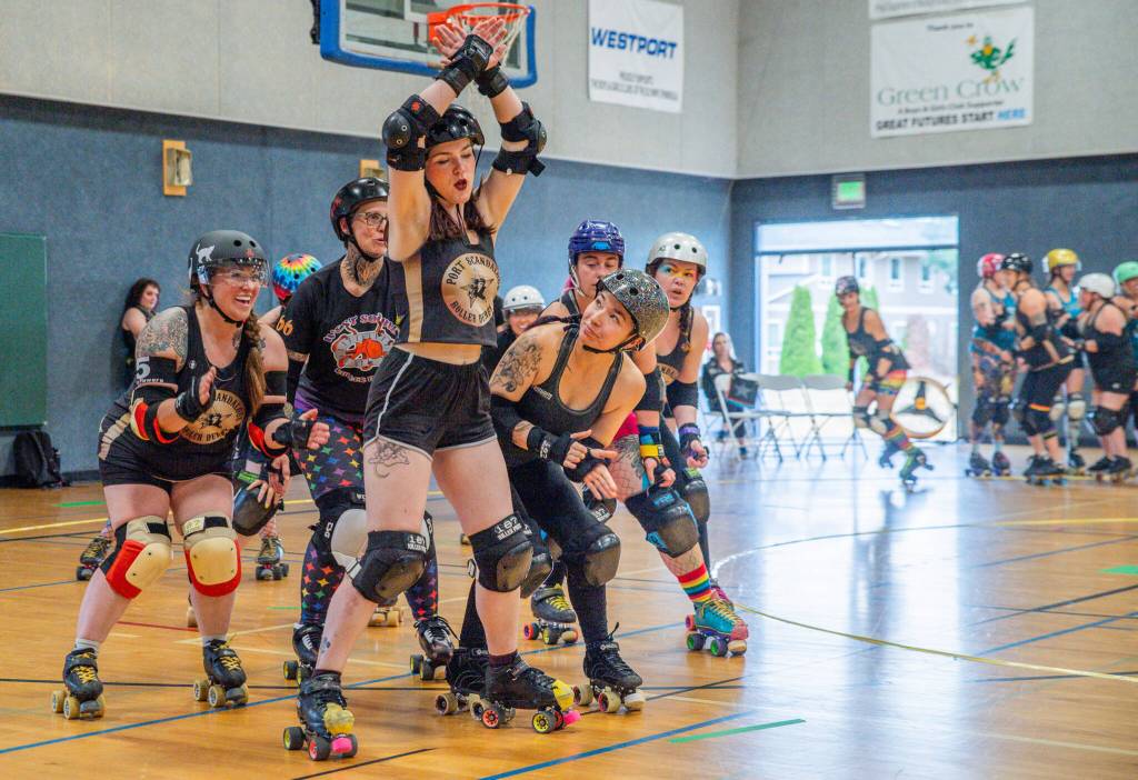 The first half of Saturday’s competition between the Port Scandalous Roller Derby team and South Sound Roller Derby from Olympia was close with the Scandals ahead for part of the time, but South Sound won with a final score of 161-116. The Scandals next bout will be out of town.