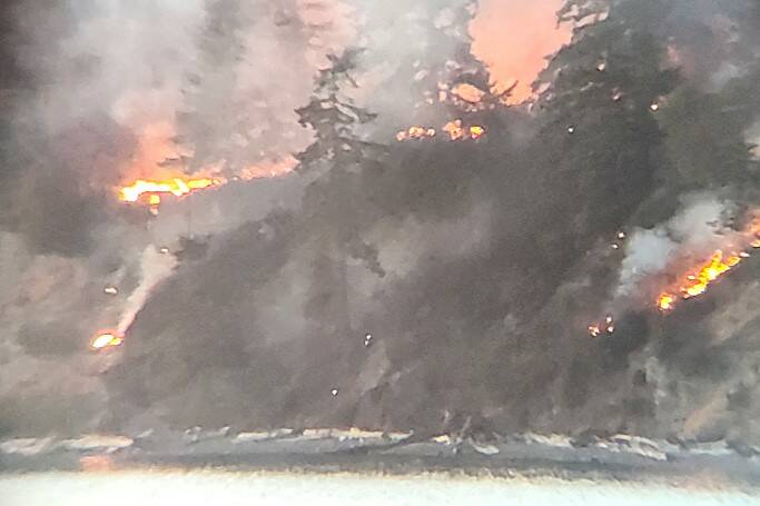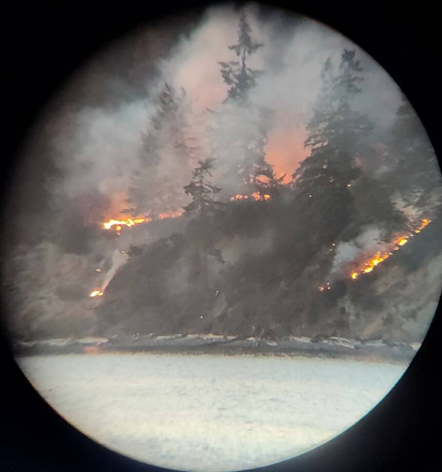 • On July 5, just before 9 p.m., firefighters worked through the night on the 3000 block of East Sequim Bay Road to extinguish a 150-foot-by-150-foot brush fire that was burning in four directions and going over the bluff. Turner said they stayed through 2 p.m. July 6 to ensure the fire was out and the Department of Natural Resources Wildland Team took over extinguishing the fire while FD3 crews supplied water.