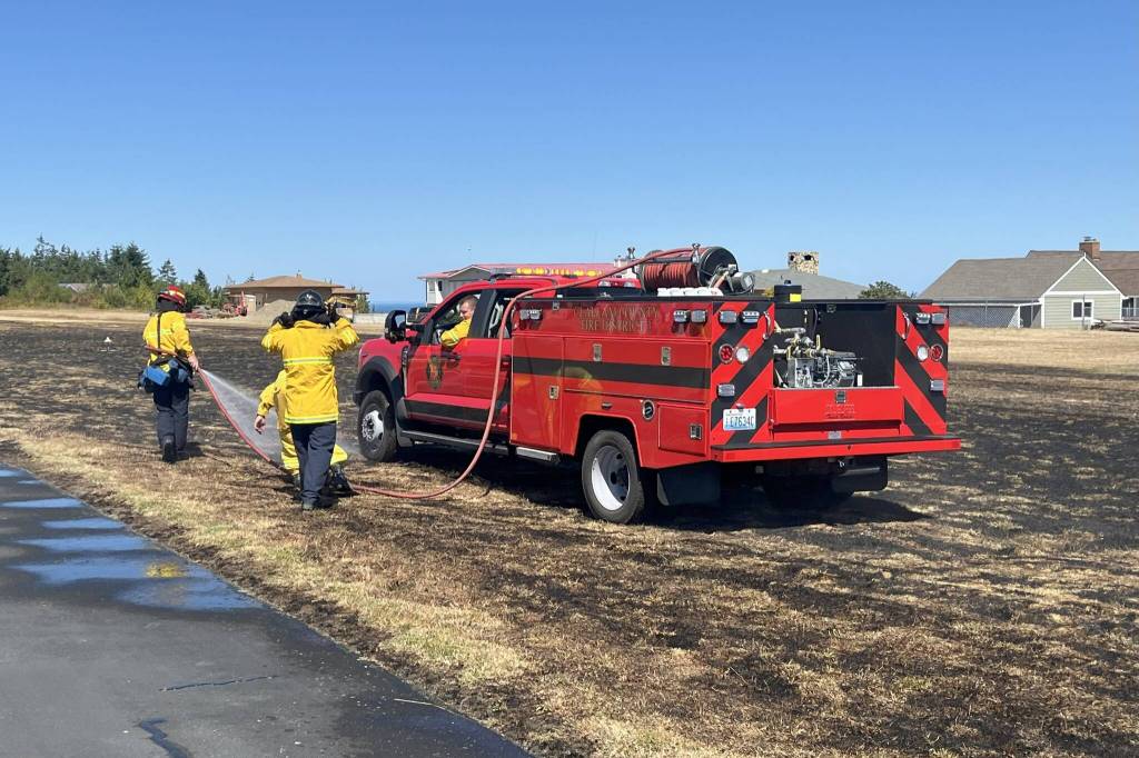 Two fires along the Diamond Point Airport runway were extinguished by Clallam County Fire District 3 firefighters on Monday.