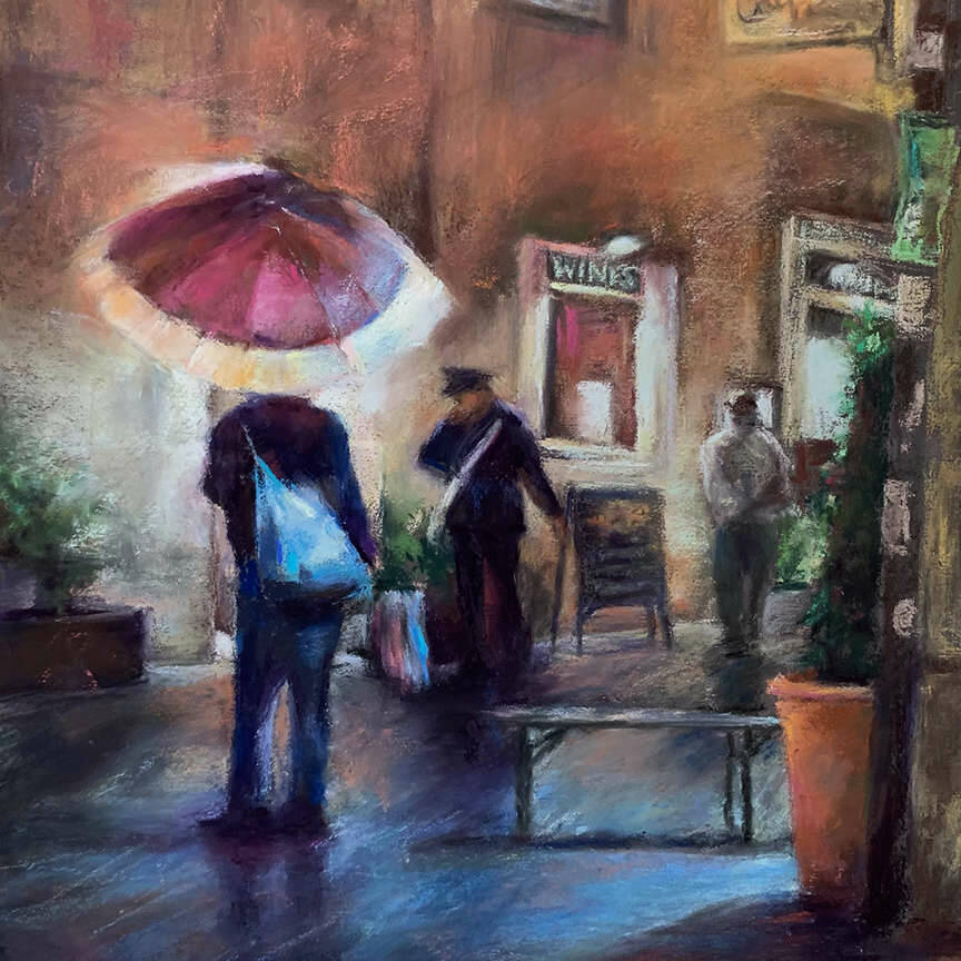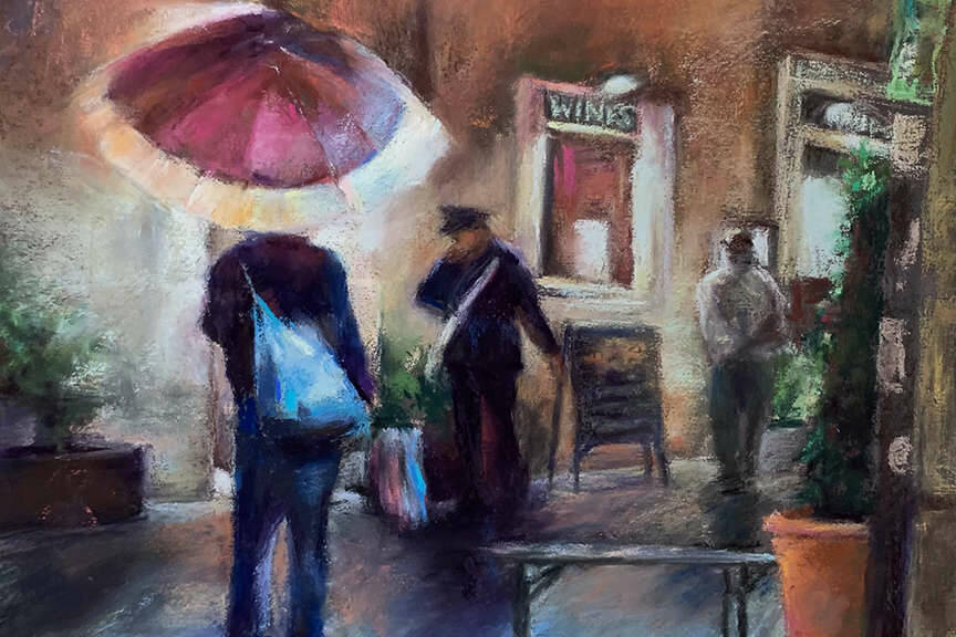 Anne has had her fingers immersed in art and design since she could wield a crayon. She studied fashion design in New York City, and designed costumes for avante garde off-off Broadway productions. She’s etched portraits into granite with diamond scribes; created plans for highly functional cabinetry as an interior designer; painted commissioned portraits on her laptop while traveling; and now works as a pastelist in her Sequim studio. An award-winning artist and Signature Member of the Northwest Pastel Society, her paintings have been juried into regional and international exhibitions, and hang in private collections across the country and in Europe. Anne says, “I’ve always been intrigued by chiaroscuro works. I’m at home using the technique and incorporating it, to some extent, in most of what I paint. I imagine that’s because I was taught traditionally, using charcoal before color; and from working for so many years on deep black granite. I’m thrilled to be painting in this familiar dramatic style for this exhibit. It captures that ethereal quality of bringing mystery and life to the canvas so well, and invites the viewer to come in for a closer look.”