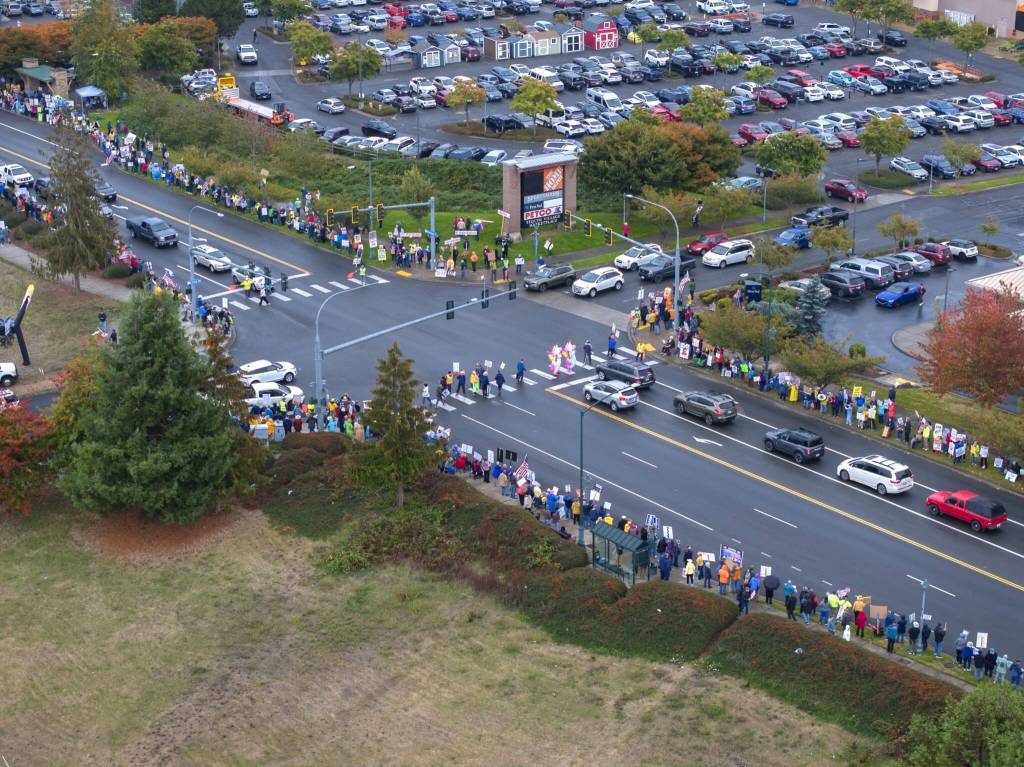 About 3,000 people participated in the “No Kings II” protest in Sequim on Saturday, Oct. 18 — the largest turnout thus far for protests against the Trump administration’s policies that have taken place in recent months, according to organizers with Individible Sequim.