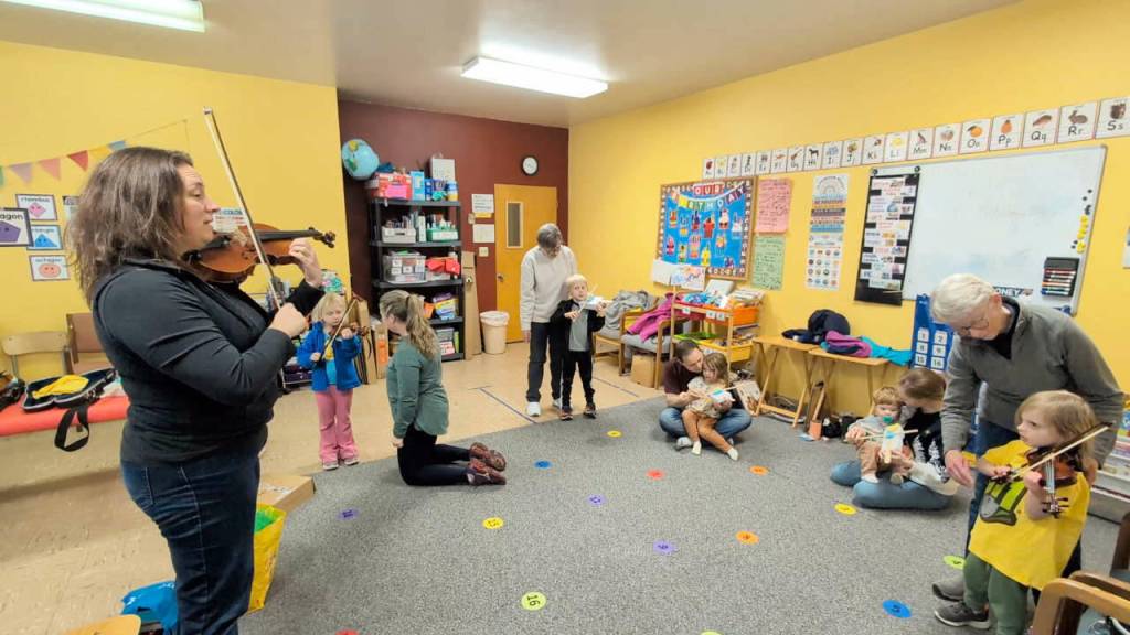 This will be the first concert where students from new Port Angeles beginner string classes that began in fall 2025 get to play along with students from Sequim beginner string classes which have been running since 2012. This fall, the Port Angeles branch taught by local musician and composer Jesse Ahmann will also run its first set of Intermediate string classes, as well as an after-school youth orchestra group for older middle school students.