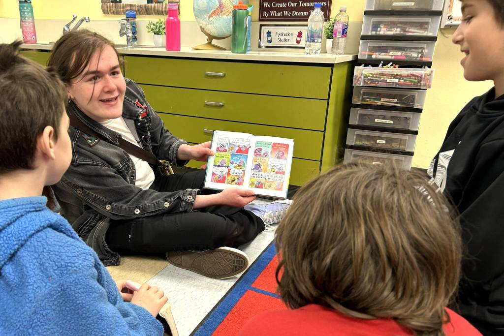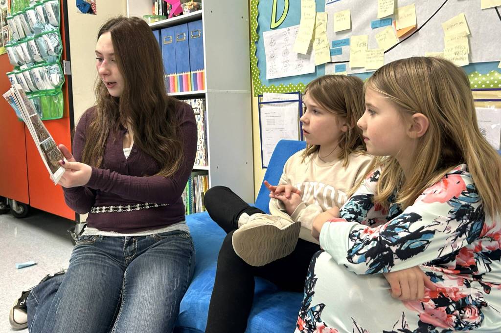 Sequim School District continued to recognize Read Across America Day on March 2 with some Sequim High School classes walking over to Helen Haller Elementary for a half hour of reading with third-fifth grade classrooms. Sequim Middle School eighth graders traveled via bus to Greywolf Elementary to read with kindergarteners to second grade, as well.