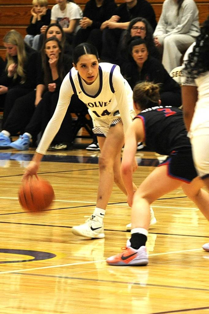 Another key game for the Wolves, they said, was their district finals game on Feb. 21 in Bainbridge. The Wolves had lost twice to them already in the regular season, and the winner-to-state game came down to defense, particularly from seniors Navaeh Owens, and Hailey Wagner, who received the league’s Sportsmanship award for Sequim. The Wolves won the game 46-44.