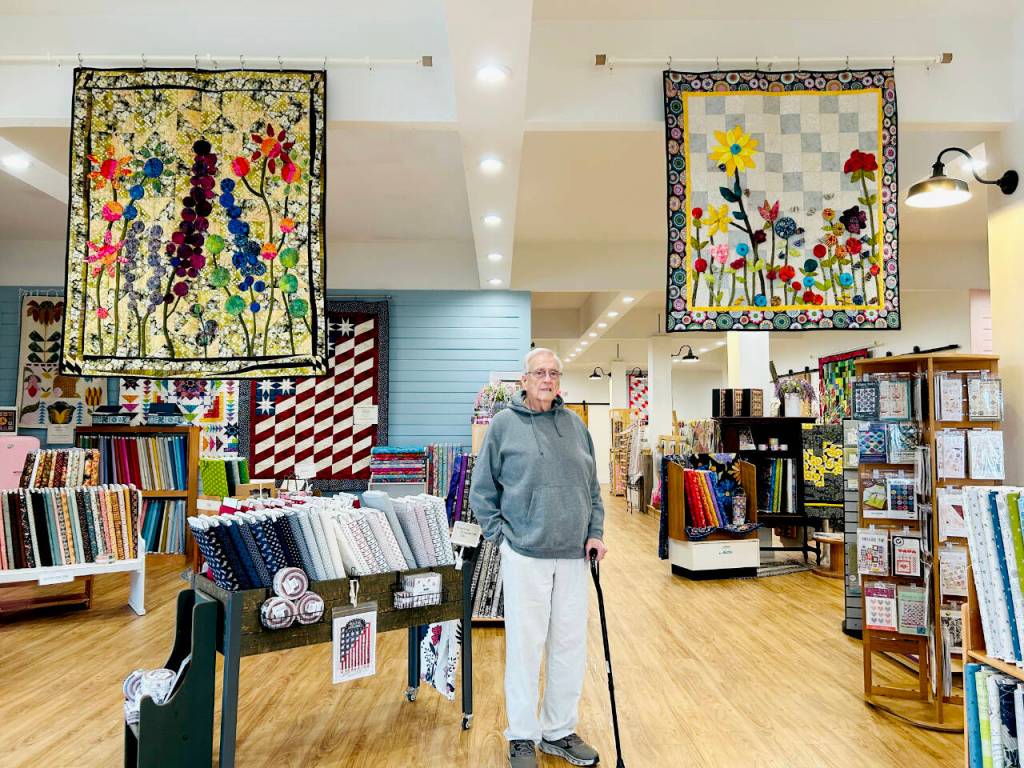 Over three decades, he estimates he has made at least 100 quilts — perhaps more. He shops at Driggs’ store and last year she asked to hang some of his quilts there.