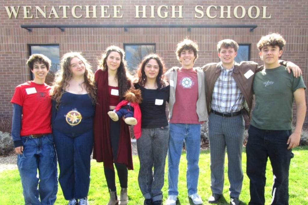 Sequim High School seniors, from left, Charlie Medlong, Jessie Bainbridge, Laila Sundin, Ahrya Klinger, Josh Loucks, Finn Braaten, and Nico Musso finished 12th in the 2A state Knowledge Bowl tournament on March 21 in Wenatchee.