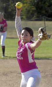 Sequim's McKenzie Bentz pitches in the sixth inning against Port Angeles on Tuesday at the Dry Creek athletic fields in Port Angeles.