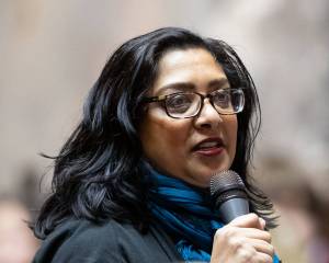 Sen. Mona Das, D-Kent, the primary sponsor of SB 5323, speaking on the bill. Photo courtesy of Hannah Sabio-Howell/communications specialist, Sen. Mona Das