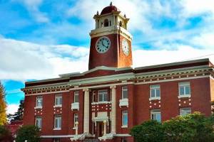 For the safety of the community and the safety of county staff, the Clallam County Courthouse — with…