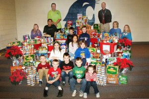 Helen Haller Elementary School students celebrate a successful holiday season food drive.