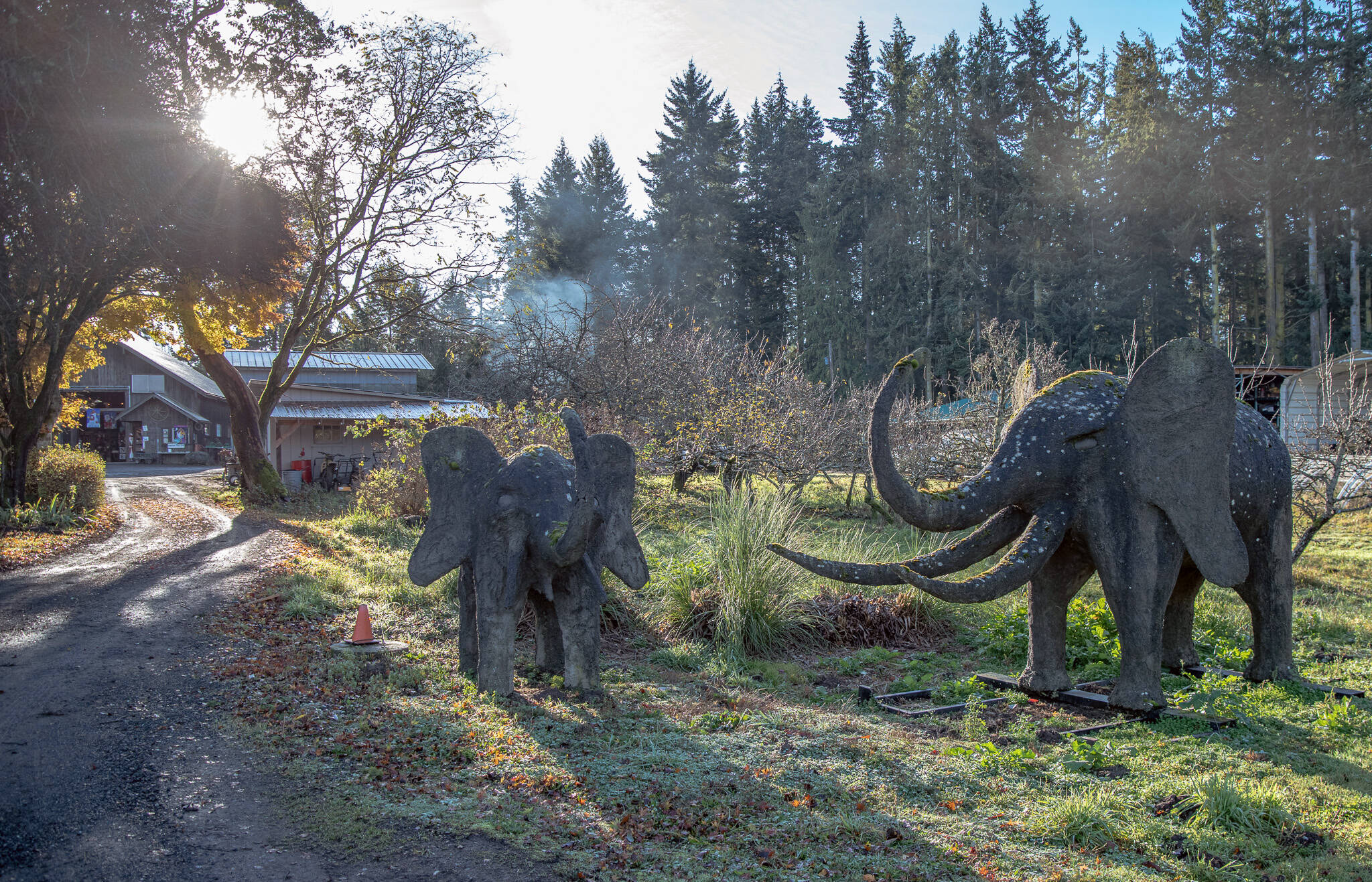 Lazy J is also host to a variety of large artifacts, like the approximately 6,000 pound concrete elephant, a smaller elephant, a triceratops and a giant octopus which adorn a junction of the farm’s roads.