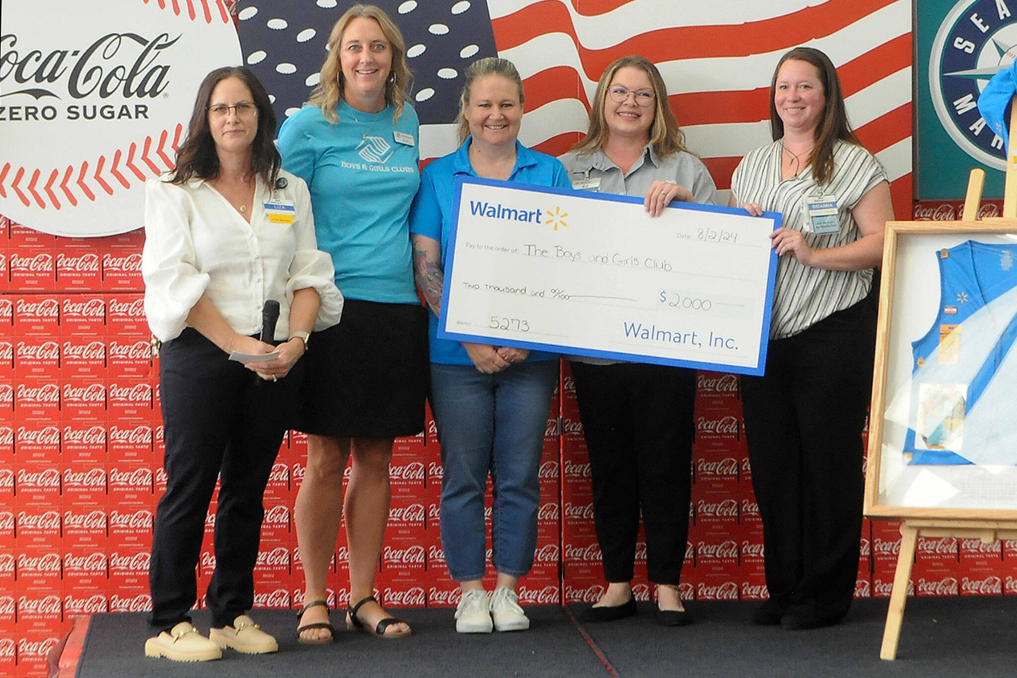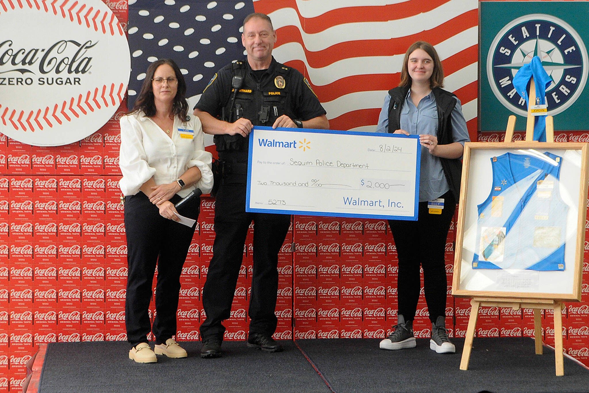 Walmart gave four agencies donations, including $2,500 to both the YMCA of the Olympic Peninsula and Dungeness Valley Health and Wellness Clinic, and $2,000 to both the Boys & Girls Clubs of the Olympic Peninsula, and the Sequim Police Department.