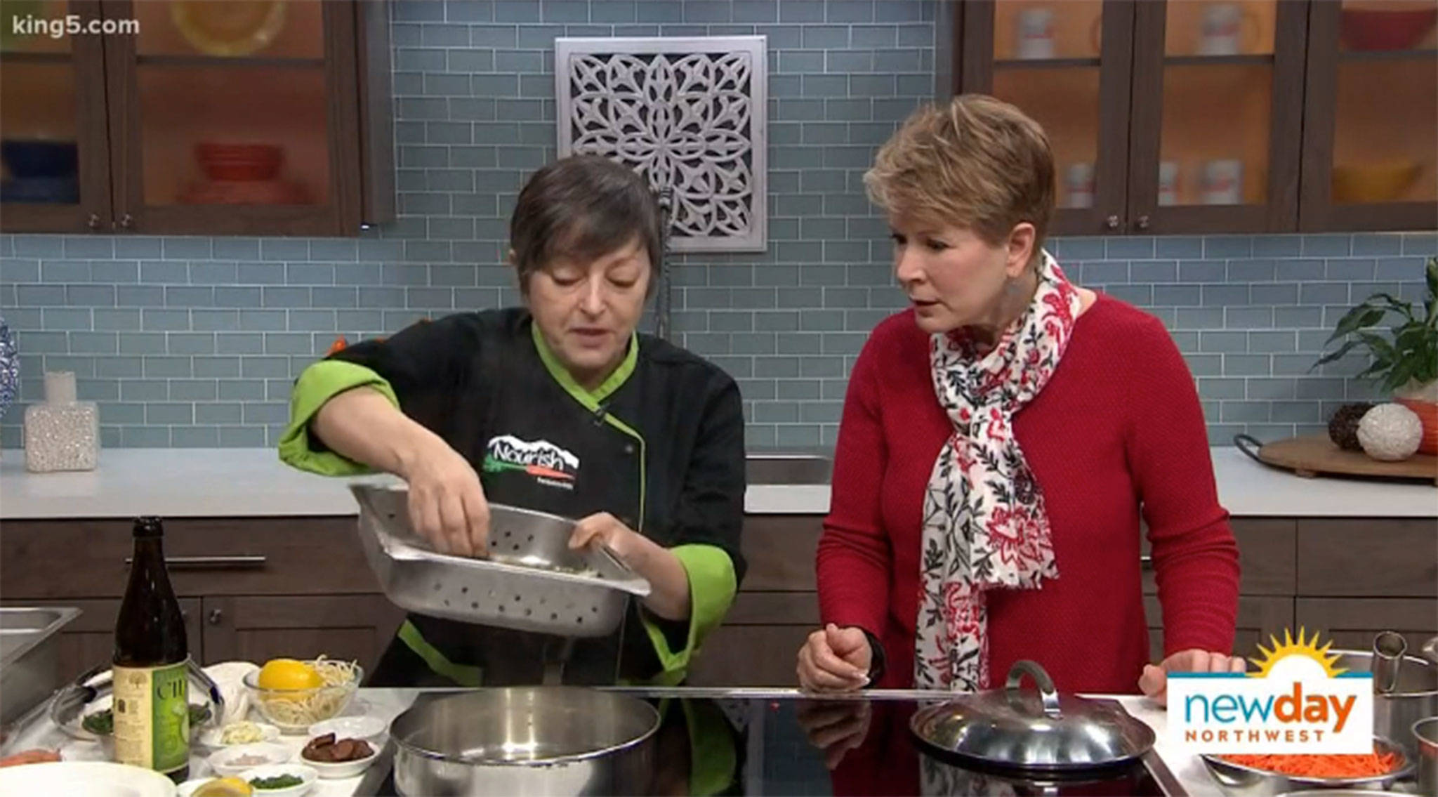 Tanya Rose, co-owner and chef of Nourish, dished up a cooking demonstration on King5’s New Day Northwest daytime program on President’s Day.